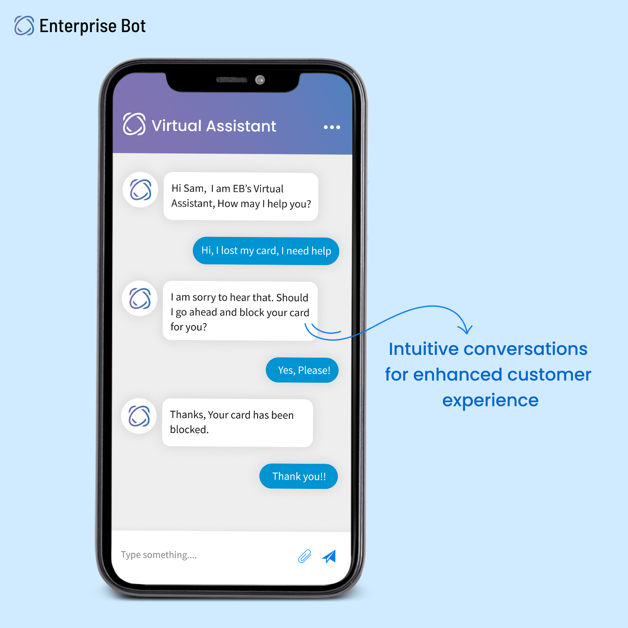 Our AI bots are enabled with pre-built integrations, contextual understanding, and smart escalation to live agents on the basis of sentiment analysis. From smart ticket triage of customer requests, to re-routing and request fulfillment, our conversational AI streamlines end-to-end customer service operations for enterprises.