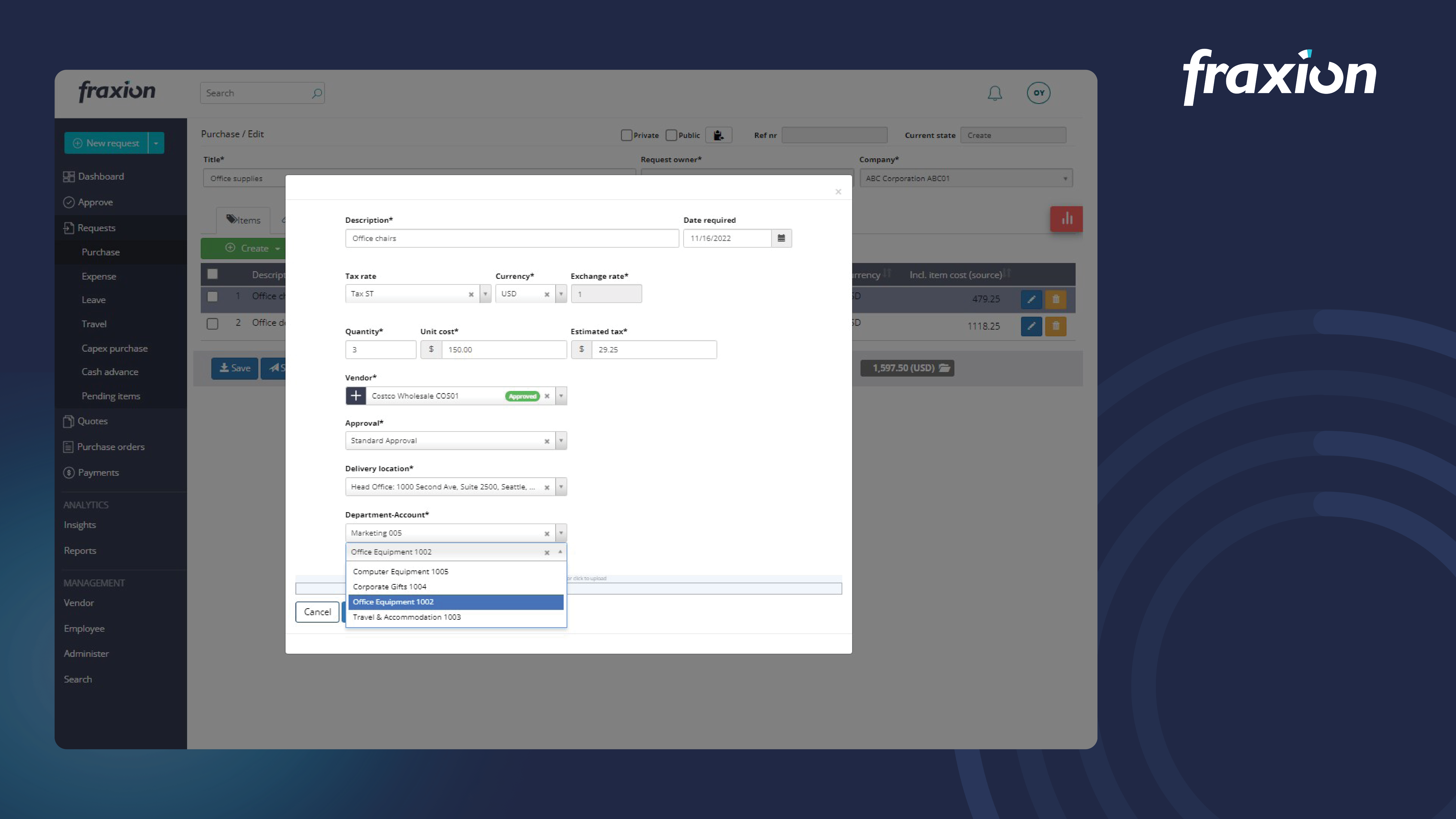 Fraxion offers a complete spend management solution for purchase requisition-to-PO, expense and approval management, AP workflow management, and spend analysis. The solution includes mobile purchase requisition-to-purchase order functionality with advanced approval routing, quoting, invoice approval, and 2 or 3-way matching capabilities. It allows companies to configure their policies and actively manage compliance, and provides advanced analytics for spend analysis with reporting power and insights. Fraxion also helps manage supplier take-on and ensures that all spend occurs with approved suppliers, and allows companies to leverage their data to negotiate more favorable terms and discounts. Fraxion PunchOut is also available.