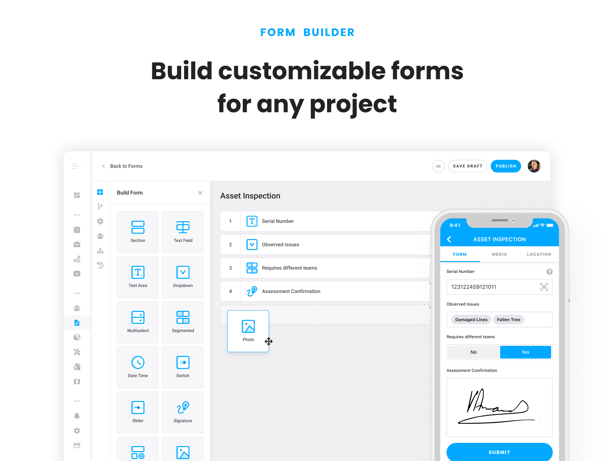 Ability to capture information about assets.Not as user friendly or integrated as Survey123/collector by ESRI.