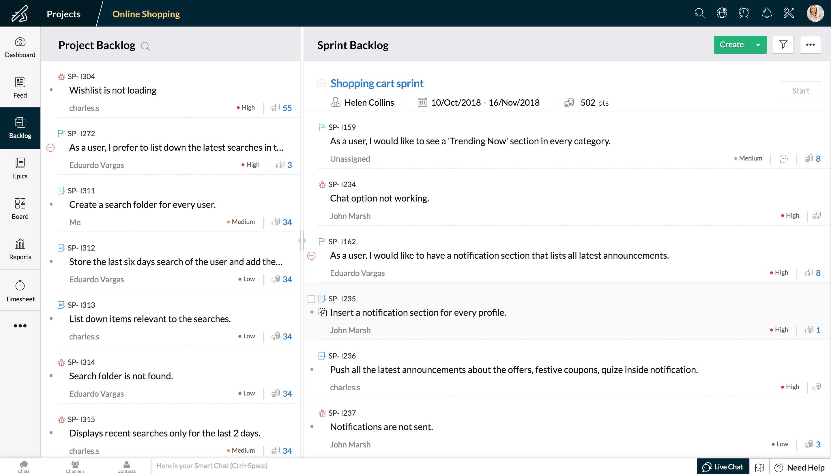 Positive First impression is the only positive note I can make on this software. During my free trial, I got carried away with pretty look of this application and charts/dashboards etc., and signed up for a year long Professional contract. BIG MISTAKE!.These developers are like a fresh kids out of some d-School, who have no clue that people need to be able to access their data efficiently at a later point after data was entered into this thing that leads it to ABYSS of no-where land! There are plenty of pretty looking charts that DO NOT ALLOW click-throughs for further details. AND Literally, there are no printable reports in the system - a chart is not a report! And exported Excel spreadsheet with hodge-podge of my data slapped together is not a report either, my friend! There is literally NO CONSISTENT WAY of creating/accessing your Sprints.
